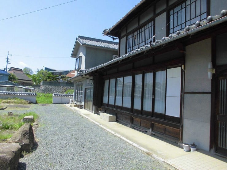 瓦屋根や縁側風の大きな窓が特徴的な落ち着いた雰囲気の日本家屋。